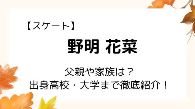 野明花菜の父親や家族は?出身高校・大学まで徹底紹介!