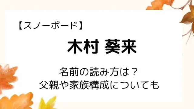 木村葵来の読み方は?父親や家族構成についても詳しく紹介!