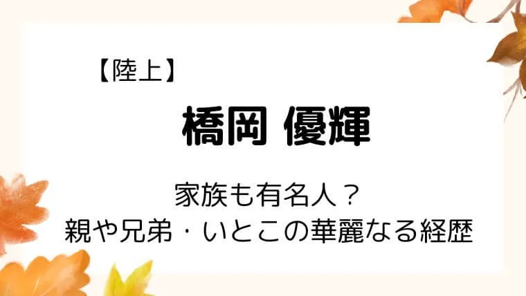 今回は、「橋岡優輝は家族も有名人?親や兄弟・いとこの華麗なる経歴まとめ」というテーマで紹介します!