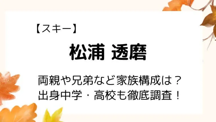 松浦透磨選手の両親は、スキーや器械体操の経験者で、幼少期から息子の最大のサポーター兼指導者代わりとして支えてきました。